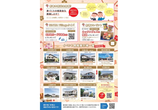 日にち :1月3日(土)~ 12日(月・祝)※水曜定休日 受付時間:10:00~17:00 場所 :新和建設 各展示場 |