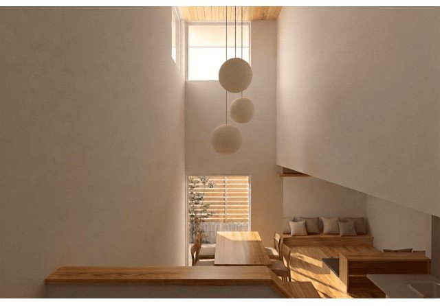 都市部の住宅街に多い、三方を囲まれた縦長の敷地。プライバシーを確保しながら十分な採光を確保するため、住まいの中心に「光の筒」をデザインしました。吹抜けを通して降り注ぐやわらかな光が、穏やかな明るさを広げます。「この土地で明るい家は難しい…」「制約のある敷地を最大限活かした家づくりがしたい」そんな想いをお持ちの方も、ぜひ現地でご体感ください。[ 続きを読む ]