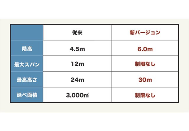 従来から新バージョンへの変更点はこちら。これまで以上に開放感のある建物が可能となります。