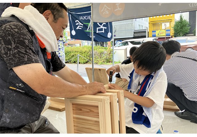 木工教室では、小学生の皆さんと「おもちゃ入れ」の製作に挑戦。大工や電気、水道、サッシ、建具といった住宅づくりを支えるプロの職人たちが先生となってサポートします。