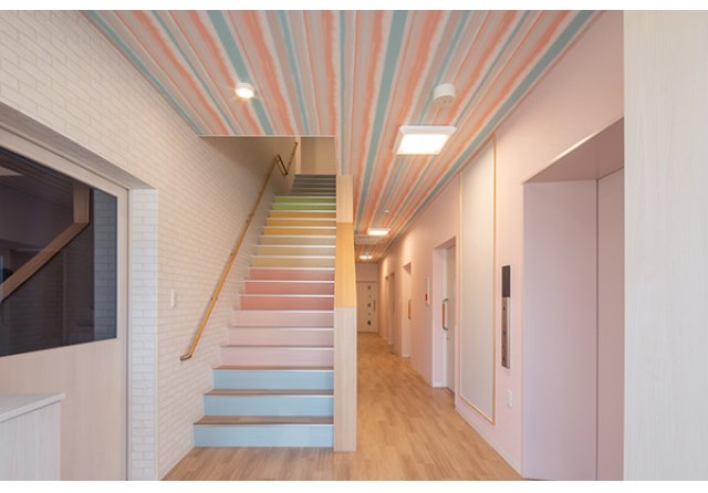 そこで、スタッフの皆さんと相談し、階段を虹色のカラフルなデザインにすることに!