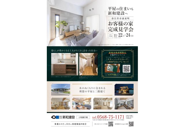 新和建設 小牧展示場(0568-75-1171)またはイベント予約フォームへ