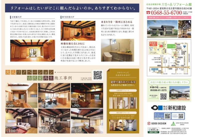 新和建設 北名古屋市 木香の森(きのかのもり)展示場(0568-55-6700)またはイベント予約フォームへ