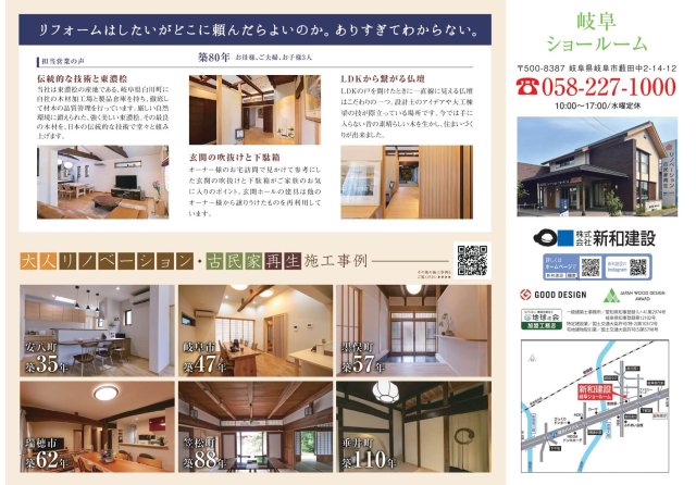新和建設 岐阜ショールーム(リフォーム専門)(058-227-1000)またはイベント予約フォームへ