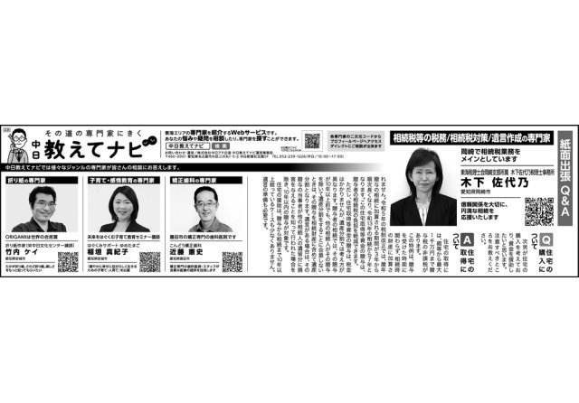 4月29日 中日新聞三河版に専門家の紹介が掲載されました